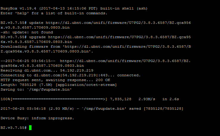 Then type in upgrade url of the relevant firmware once you press enter it will begin the upgrade process and reboot the ap accordingly.